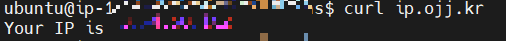 curl ip.ojj.kr를 입력하면 ip를 확인할 수 있다.