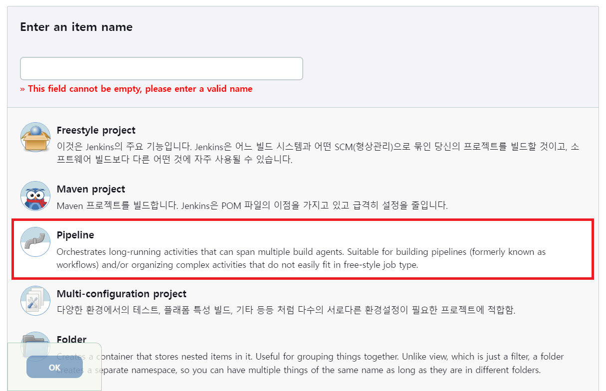 아까 Build Triggers에서 쭉 내리면 Pipeline이 보일 것이다.