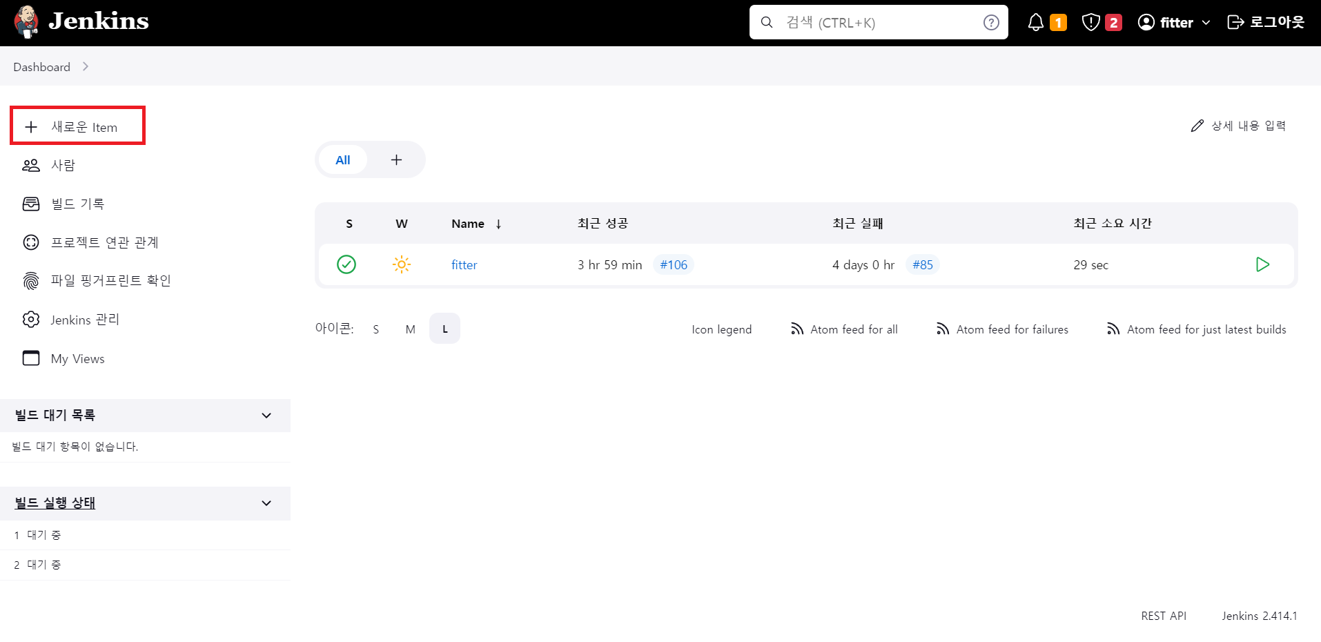다시 Jenkins 홈으로 돌아가서 왼쪽의 새로운 Item을 클릭한다.