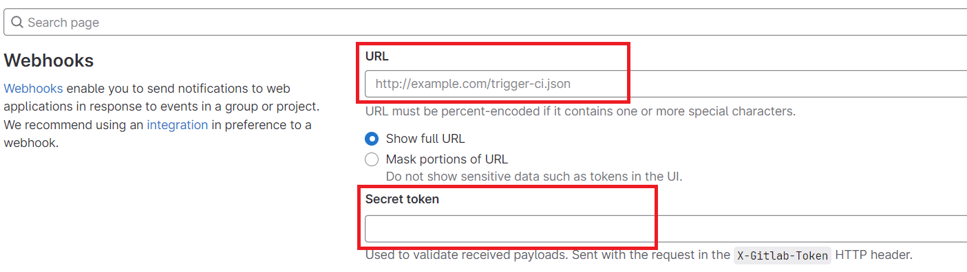 URL에 아까 위에서 봤던 파란색 네모 안의 url을 넣고 Secret token에 마찬가지로 젠킨스에서 발급받은 secret token을 입력한다.