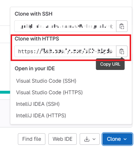 그런 다음 다시 GitLab 프로젝트로 가서 URL을 복사해온다.