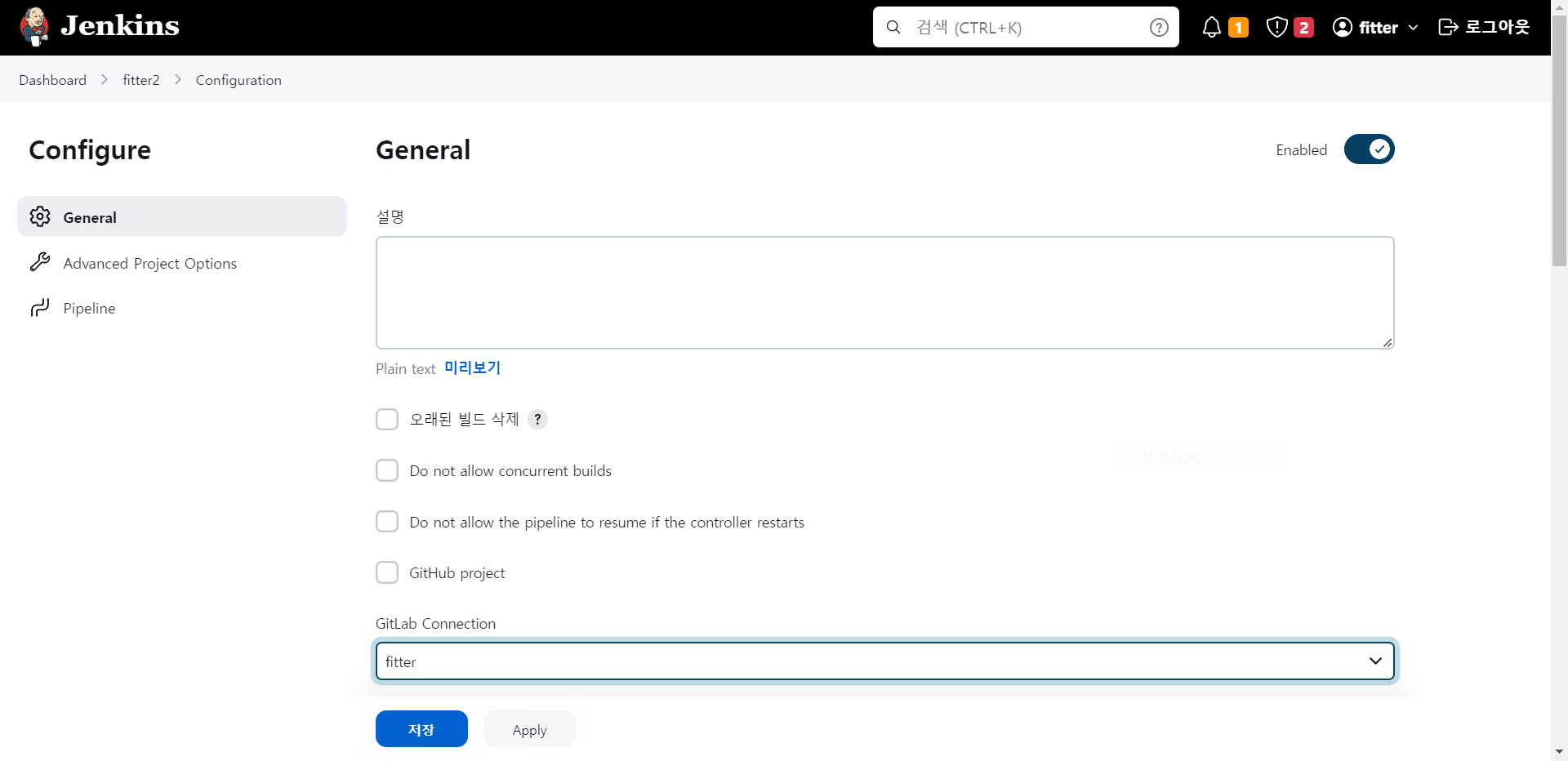 만약 못찾았다면 Jenkins 홈(Dashboard) - (item) - Configuration에서 제일 밑으로 내려오면 된다.