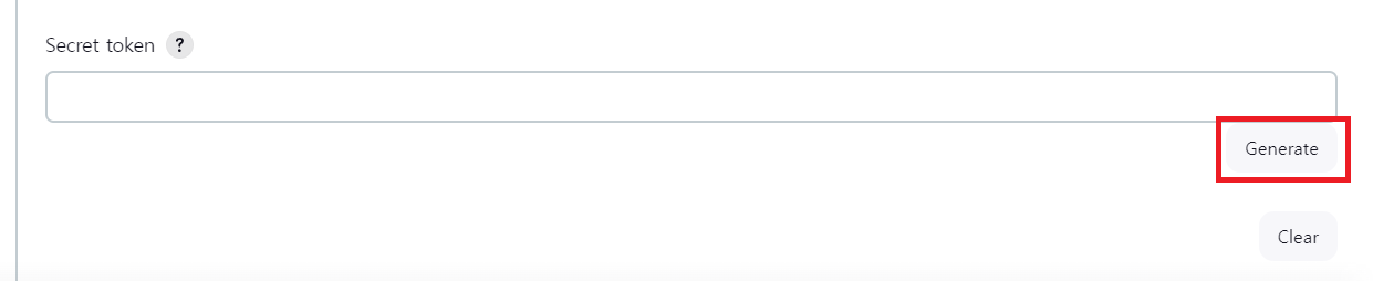 그리고 스크롤을 조금 내리면 secret token이 보인다. Generate 버튼을 클릭해서 Secret token을 생성한다.